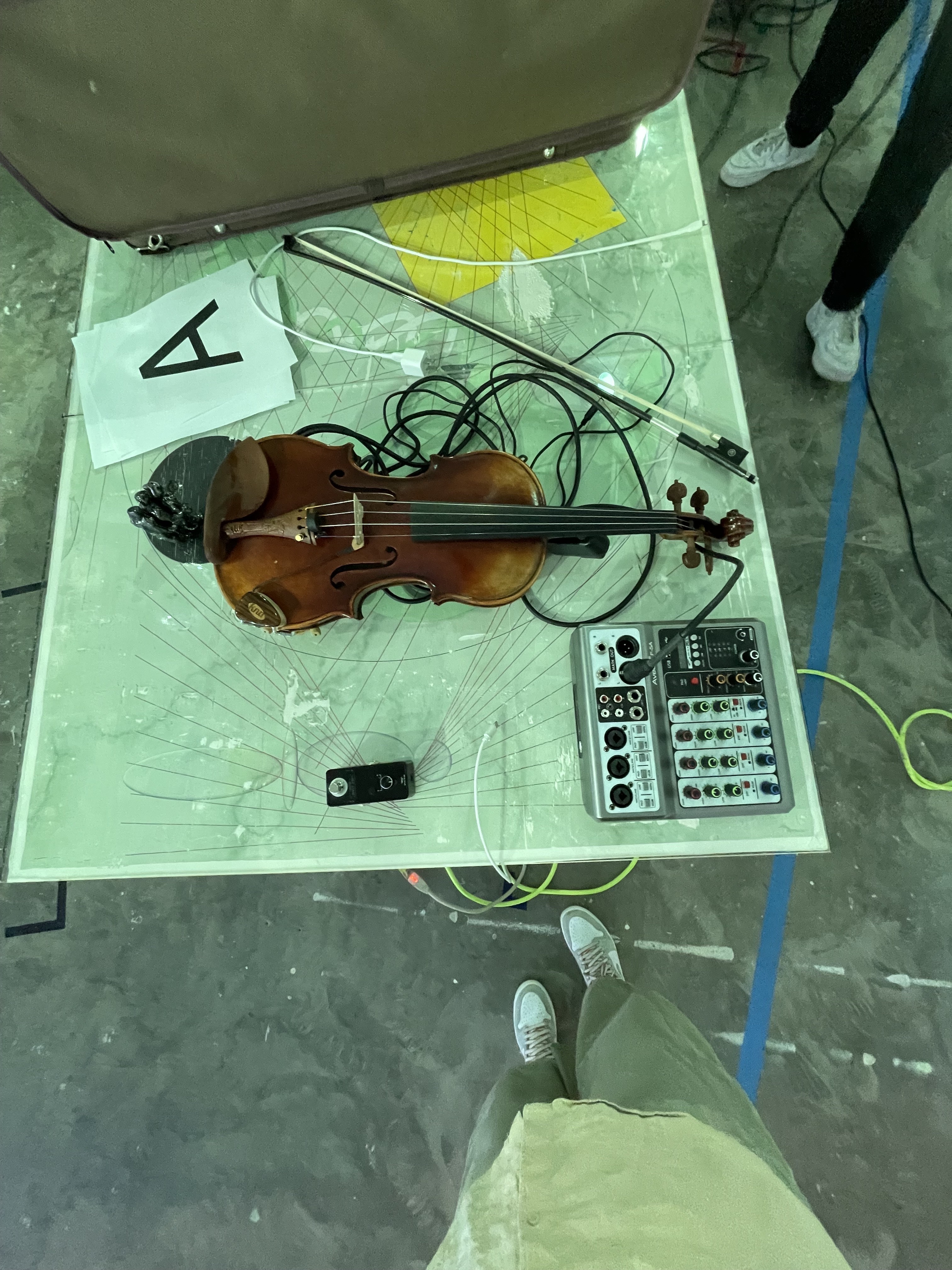 During the second program event Composer Joshua Coyne and I presented “during celebration: fragments, arrangements, and interventions.” Building upon our shared interests in works that incorporate chance and encourage active audience participation as fundamental compositional elements, this concert event will showcase an aleatoric piece developed live before the attending audience. Using a violin combined with techniques and technologies that enable complex layers of sound, Coyne’s composition will adapt in response to my actions and interactive prompts from the audience. The piece’s construction will unfold in real-time, anchored in the dynamic rearrangement of score fragments throughout the performance. This approach seeks to recontextualize mid-20th-century avant-garde practices, offering a reinterpretation of traditional ideas about musical linearity and predetermined composition.